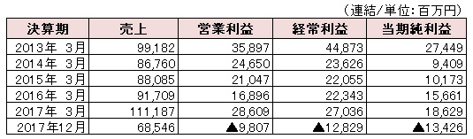 パチンコ・スロットメーカー界の雄、(株)ユニバーサルエンターテインメント(以下、ユニバ)。2017年12月期は決算月の変更にともない9カ月の変則的なものとなった。これにより、同期の売上高は685億4,600万円の計上に留まったほか、経常利益は128億2,900万円の赤字に転落した。