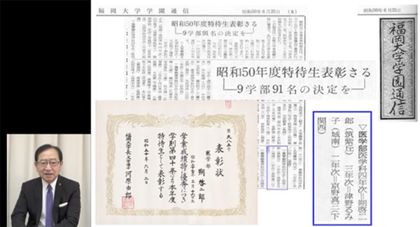 それでも「ハードな毎日を送っていると、いつしか『福岡大学医学部に入学したからには医学の勉強では誰にも負けたくない』『自分がトップになって、さらには福大をトップにしたい』と思うようになった」という朔学長。この言葉を皮切りに、福大生時代の自分がいかに優秀だったか、表彰される自分の写真や賞状、学内新聞などを山のように示しながらの自慢話が始まった。