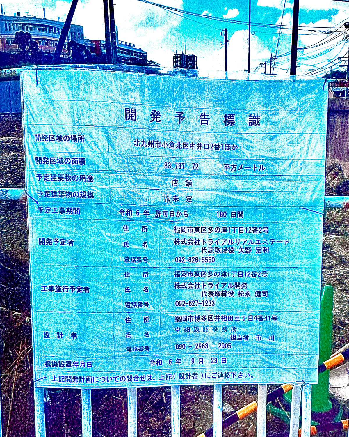 今年3月24日、トライアルは大規模小売店舗立地法に基づく店舗新設の届出を北九州市に提出しており、同28日に告示された。北九州市発表の資料によると、名称は「(仮称)中井口・高見台商業施設」、所在地は北九州市小倉北区高見台2803番2外、設置者は(株)トライアルリアルエステートで、ほか、(株)ヤマダデンキ、(株)しまむらも出店するとしている。新設日は26年9月1日。