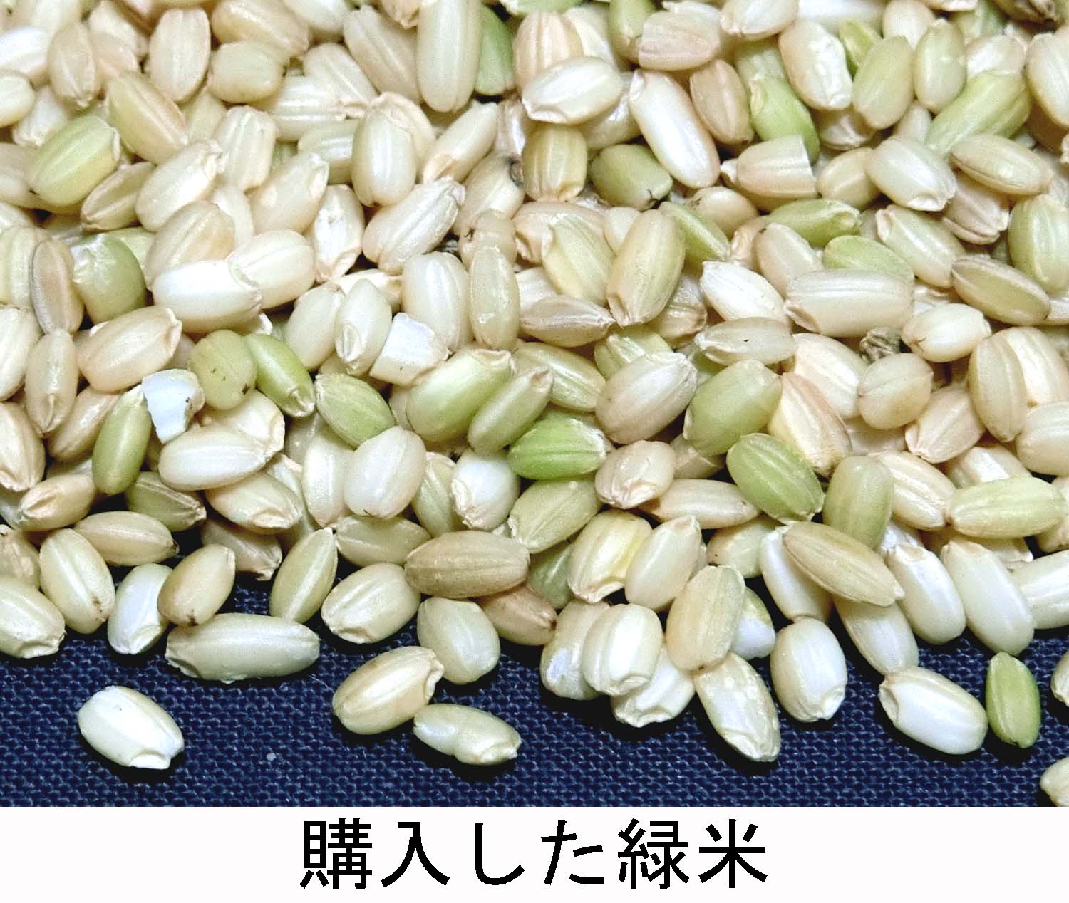 このような経緯で、インターネットで「香米」を検索したがヒットしない。「古代米」で検索したところ「緑米」が出てきた。父の話では、香米とは「少し縦長のコメ」「表面は淡い緑色」と言っていた。この「緑米」が「香米」に近いのかもしれない。試しに「緑米」を購入した。ちょっと高めの150g600円であった。