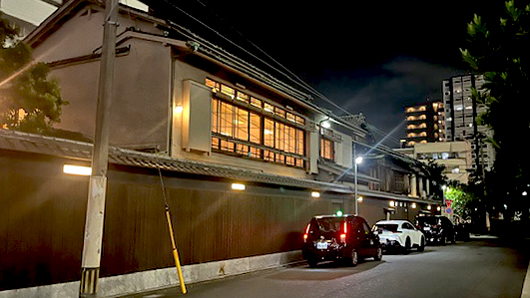 その老松の横に、9月30日、午後8時半、お客を迎えにきている高級車を含む5台の車が待機していた(写真参照)。最近ではついぞ見ない光景である。恐らくお得意さんたちが、別れを惜しんで殺到しているのであろう。華やかなりし頃をしばし思い出した。