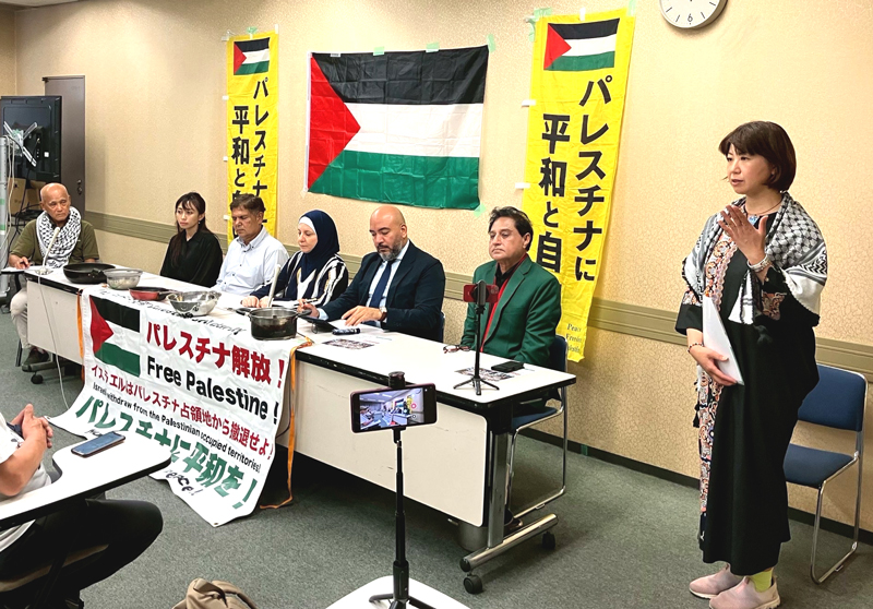 これに先立ち6日、福岡市内での記者会見が開かれ、福岡在住のガザ地区出身の女性など5人が意見表明を行った。ガザ出身のエルジャマル・カリマンさん(福岡市在住)は、ガザでは食糧や子どものミルク、医薬品も手に入らない状況にあると訴え、速やかな停戦を求めた。