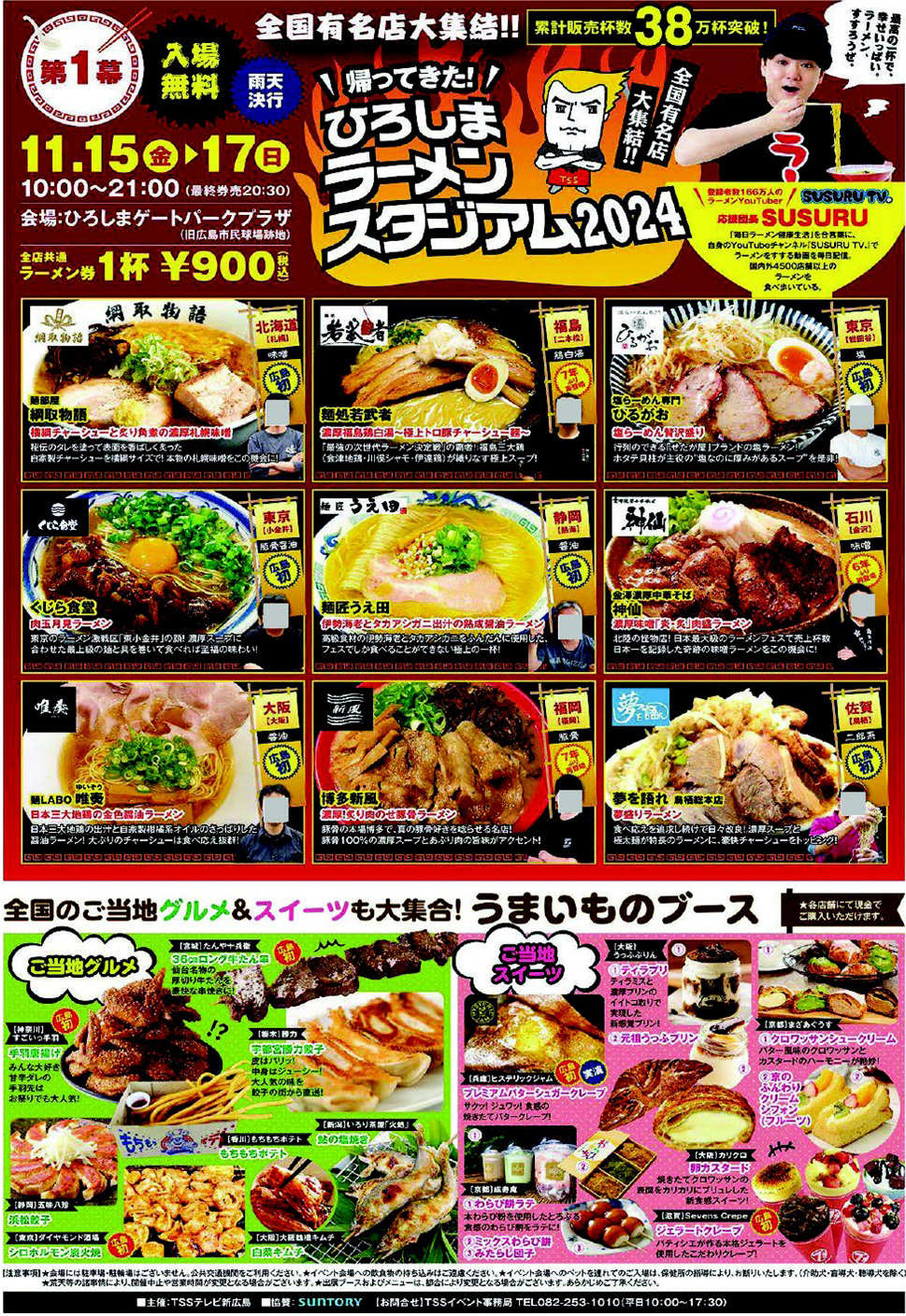 15日、消費者庁は(株)テレビ新広島(本社:広島市南区出汐、箕輪幸人代表)に対し、同社が主催したイベント「ひろしまラーメンスタジアム2024」の広告表示が景品表示法に違反したとして措置命令を行ったことを発表した。