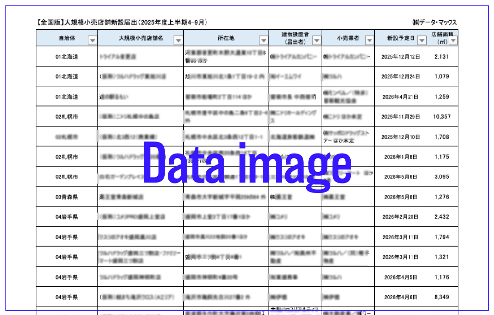 データ・マックスでは2024年4月より、九州の大規模小売店舗新設届出状況を毎月リスト化し配信してきた。NetIB-NEWS内でも高い反響を得たことを受け、このたび全国版の配信を開始する。
