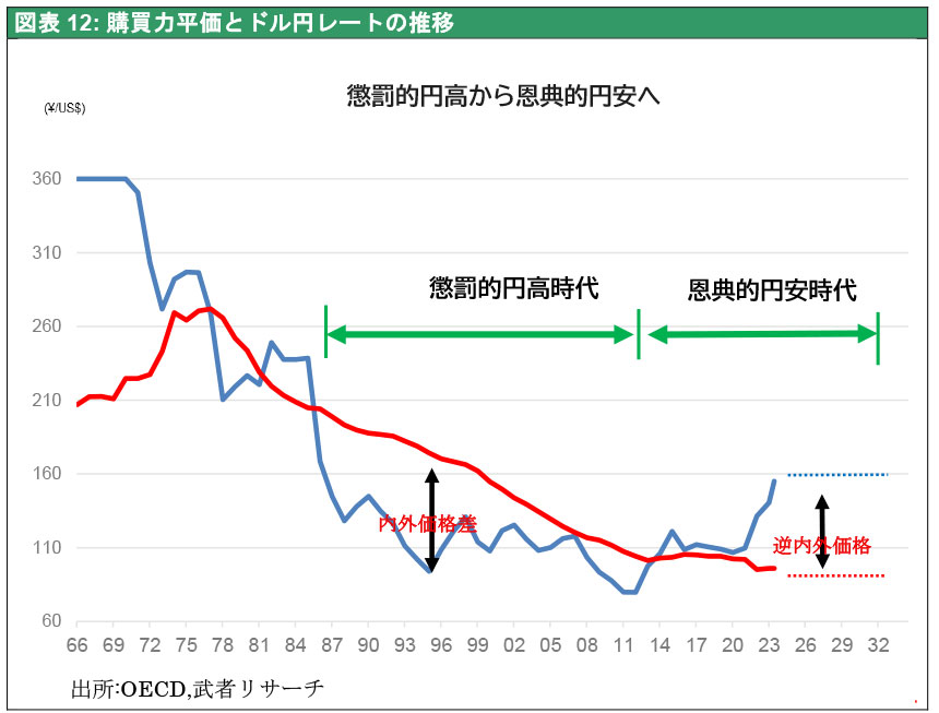 高市政権は圧倒的国民の支持の下で、保守ナショナリズム革命を遂行していくだろう。その端緒となる解散総選挙から動きが出てくる。富国強兵、財政再建の犠牲にされてきた国民生活の向上、米国に仕組まれてきた国際分業の有利化(例えば台湾から日本への生産移転)は必須である。円安は日本への生産移転を促進するだろう(図表12)。