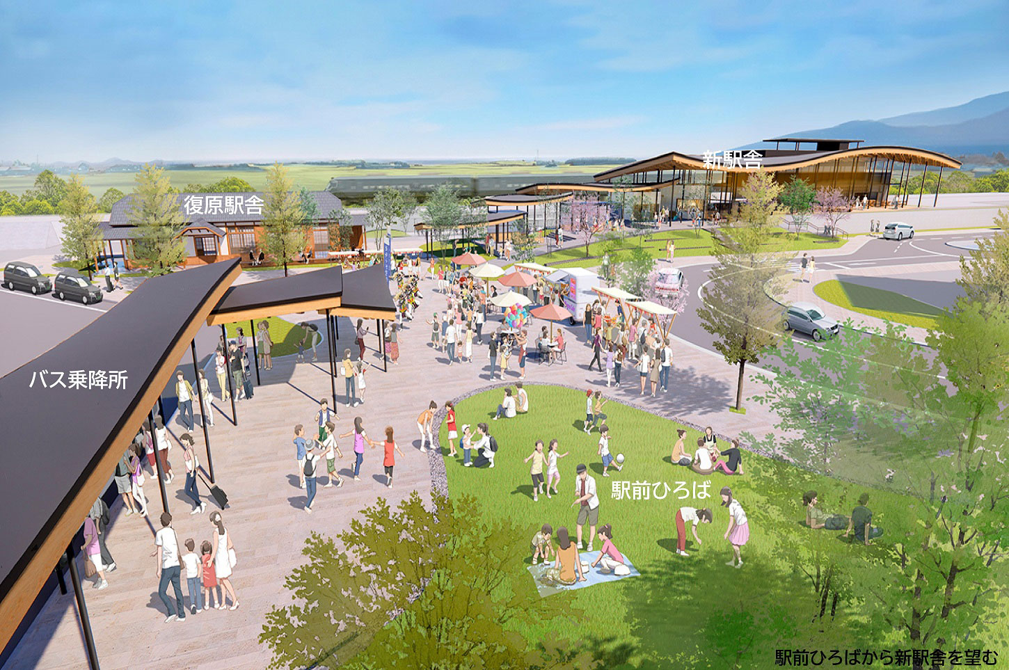 JR長崎本線・肥前鹿島駅が立地する佐賀県鹿島市では、西九州新幹線開業にともない同駅における特急列車の大幅な減便が見込まれることから、将来の状況に適応する目的で同駅および周辺エリアの整備事業を展開。2024年に公募型プロポーザルを実施し、その結果、基本設計を和久田+早田設計共同体が手がけ、昨年9月には肥前鹿島駅周辺整備工事が本格的にスタートしていた。新駅舎は27年度の完成を予定している。