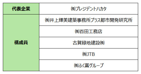 福岡市が公募型プロポーザル方式で実施していた「出来町公園休養施設等設置・管理運営事業に係る事業」の優先交渉権者に、プレジデントホテル博多などの運営を手がける、(株)プレジデントハカタを代表とするグループが選定された。グループ名はHAKATA 縁(EN) TERRACEで、構成企業は以下の通り。
