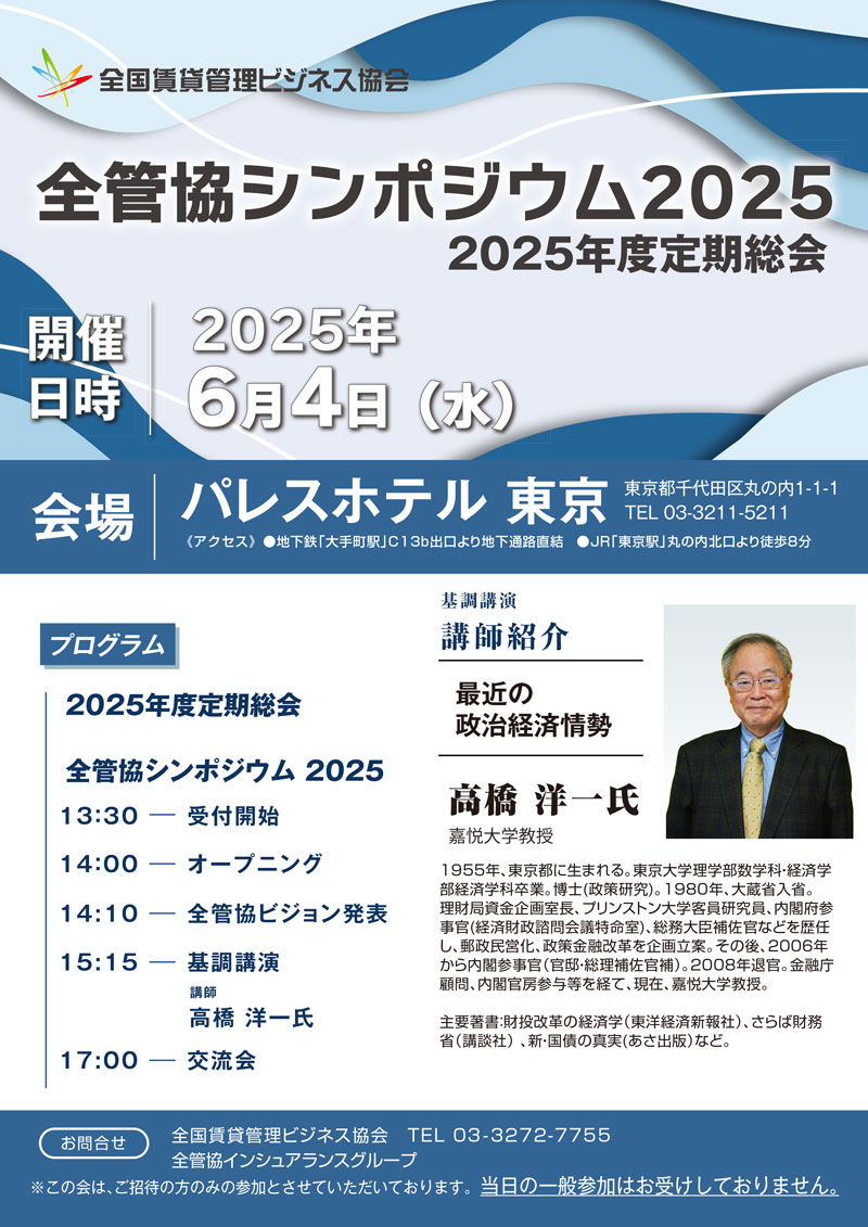 また、当シンポジウムでは、元財務官僚でリフレ派の代表的論客である高橋洋一氏も講演しているが、高橋洋一氏は菅義偉政権で内閣官房参与を務めていた。全管協関係者によると石破氏だけでなく菅氏ともつながっているという。同じ神奈川県選出という縁から菅氏は小泉氏の後見人であった。