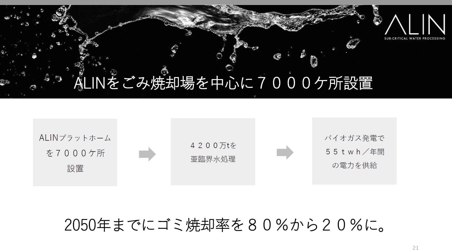 21ページに「ALINをごみ焼却場を中心に7000ケ所設置」と記載されている。