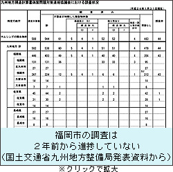 マンションなどの耐震性調査が、福岡市では2011年2月末から2年間まったく進んでいない。「姉歯物件」の耐震偽装が社会問題となった05年の翌年、福岡市の発表を契機に始まったサムシング関与物件の調査だ。ほかの自治体では調査がほぼ完了したのに、"震源地・福岡市"で6年かかっても調査が終わらない。居住者らの安全と安心の確保にとって重大な事態であり、偽装の疑いをかけられた建築士にとって耐え難い苦痛を与え続けている。