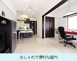 まず、パナソニックの住設機器を同社オリジナルにアレンジしたことだ。「収納を大きくとり、部屋はもちろん、パナソニックさんの協力でキッチンやバスルームにもこだわりました。キッチンは、ファミリータイプをワンルームタイプにつくり替えてもらい、人造大理石カウンターを使っています」(三明社長)。