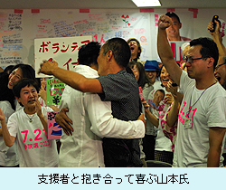 今回から選挙運動での使用が解禁となったインターネットを選挙戦で駆使したのも、山本太郎陣営の勝利の一因。選挙期間中の活動を、インターネットで逐一見えるようにした。あるボランティアスタッフは、「ボランティアスタッフのなかに、ネット動画を撮れるプロがいて、彼らが撮った動画をネットで流した。いろんな人がボランティアに参加してくれて、選挙活動中に力を発揮してくれた」と、選挙戦を振り返る。