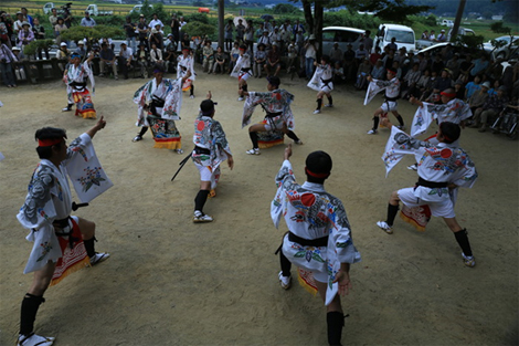 市内各地で行われているんですが、まず、朝日町中野の荒踊り、そして、東川登宇土手、山内町三間坂の荒踊り、最後は、東川登町の袴野の面浮流と。市内も広いのでこれが限界。