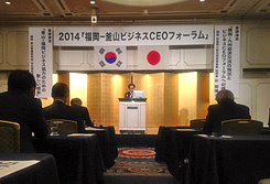 福岡商工会議所、釜山商工会議所、福岡市、釜山市が主催する「福岡―釜山ビジネスCEOフォーラム」の4回目が5月22日、福岡市内のホテルニューオータニ博多で開催された。参加者総数は、日本側110名、釜山側30名の合計140名。今回は「福岡―釜山超広域経済圏形成のための実質的なビジネス交流について」をメインテーマとし、両商工会議所の代表、末吉紀雄会頭と趙成濟会長が、「今回のフォーラムが、両地域間の経済交流を促進し、実質的なビジネスパートナーを見つける契機となることを願います」などと挨拶した。先月韓国で起きたセウォル号転覆事故の犠牲者に対し、会場一体となって哀悼の黙祷を捧げた。