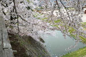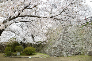 本丸内には建物がないため、とても広々としていた。満開の桜の下で、ベンチに座り花見を楽しむ親子や老夫婦の姿がとても微笑ましい。戌亥隅櫓の石垣に登り、本丸と辺り一帯を見下ろしてみる。本丸を囲む石垣やお堀が、当時の松代城の姿を思い起こさせてくれた。やっぱり曇り空なのが惜しい!松代城を再訪する理由の1つとして、心に記録した。