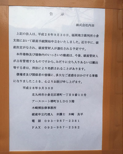 9月30日、同社は福岡地裁小倉支部に破産手続きの開始を申請した。