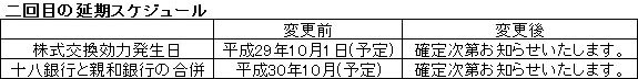 ・今年7月25日、ふくおかFGと十八銀行は共同して、「(株)ふくおかフィナンシャルグループと(株)十八銀行の経営統合のスケジュールに関するお知らせ」により、『公正取引委員会における企業結合審査が現在も継続中であるため、今後のスケジュールについて下記の通り再度延期いたします』と、統合を目指す方針については再延期するものの、撤回はしないと正式発表。