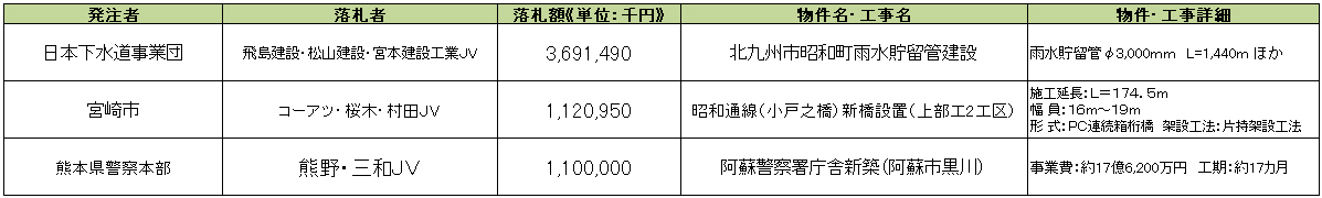 7月2日~8月8日にかけて判明した主な落札案件は以下の通り。