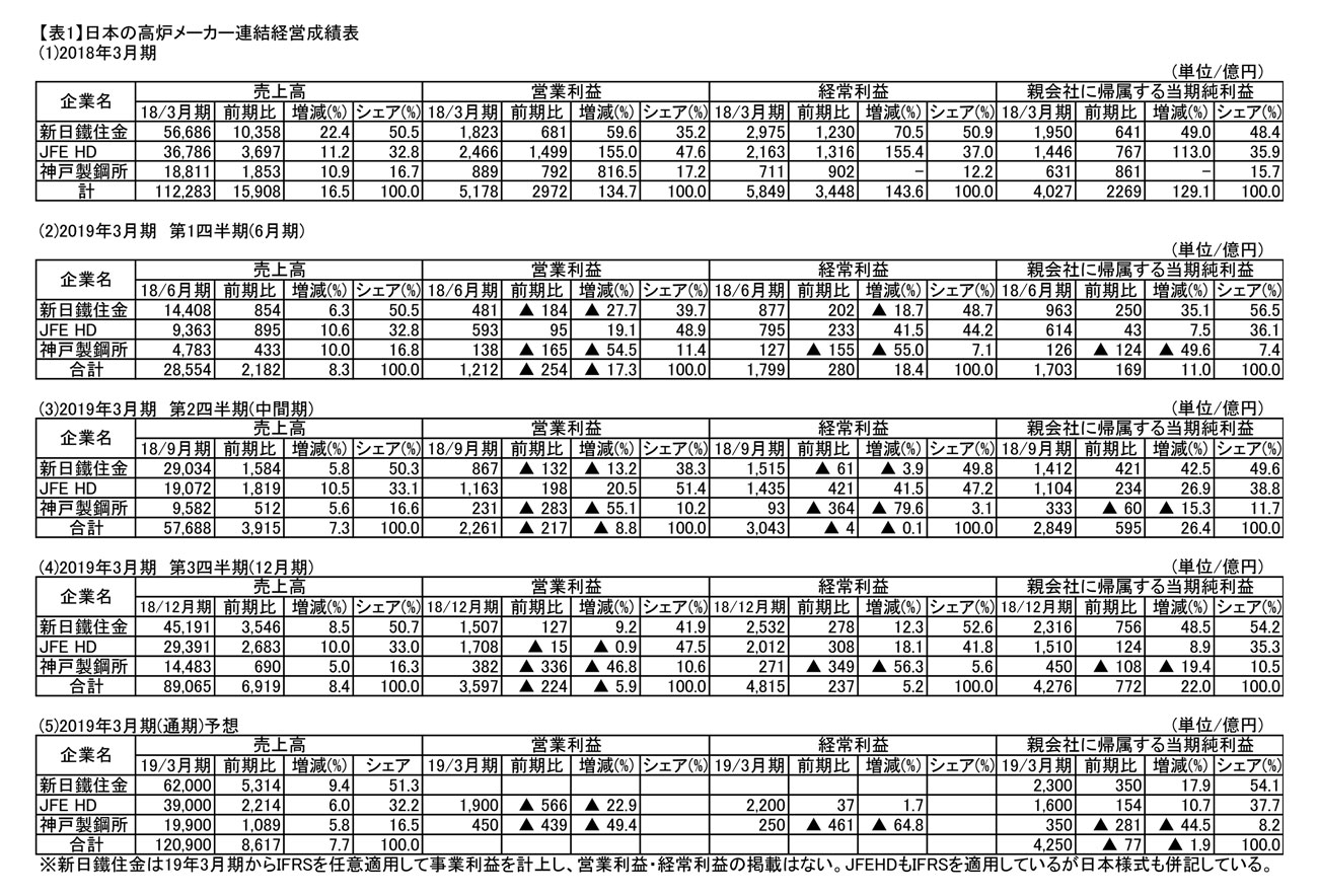 【表2】を見ていただきたい。高炉メーカー3社の経営成績表である。
