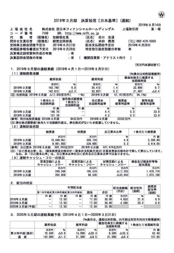 2つ目の福岡フィナンシャルグループの有価証券報告書、今月27日に行われる株主総会への提案書類である。取締役名簿に目を通したところ、谷氏の名前がまったく記載されていない。4月から取締役に就いていたのだが、今後は非常勤どころか完全に一切の役職から身を引くのだろう。かつては債権回収のために福岡市と激しく交渉をした辣腕ぶりは伝説化している。やるべきことをやり抜いて潔く身を引くこの姿勢は見事、あっぱれなり!久保田氏も谷氏の爪の垢を煎じて飲んだらいかがだろうか!