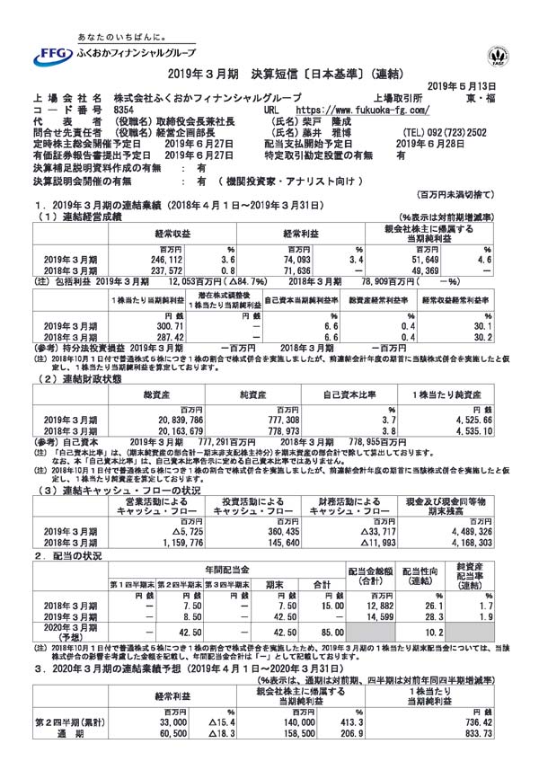 記者の机には2種類の書類が置いてある。1つは久保田勇夫新春経済講演会「2019年経済・金融見通し~世界、日本、そして九州~」の経済解説誌、もう1つは福岡フィナンシャルグループの2019年3月期の決算書である。久保田氏は西日本シティ銀行代表取締役会長であり、谷氏は今年3月まで福岡フィナンシャルグループの会長のポストに就いていたことは周知の通り。