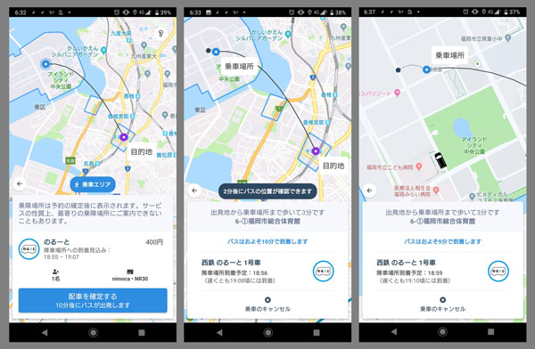 西日本鉄道(株)と三菱商事(株)は今年4月、新たなモビリティサービス(以下、MS)として、AI活用型オンデマンドバス「のるーと」の実証運行をアイランドシティ(福岡市東区)で開始した。「のるーと」とは、タクシーとバスの間に位置する乗り合いサービス。利用者はスマートフォンアプリで配車予約し、指定の乗車場所から目的地方面の降車場所まで乗車する。配車やルート選択などの運行管理はAI(人工知能)が行うのがウリだ。