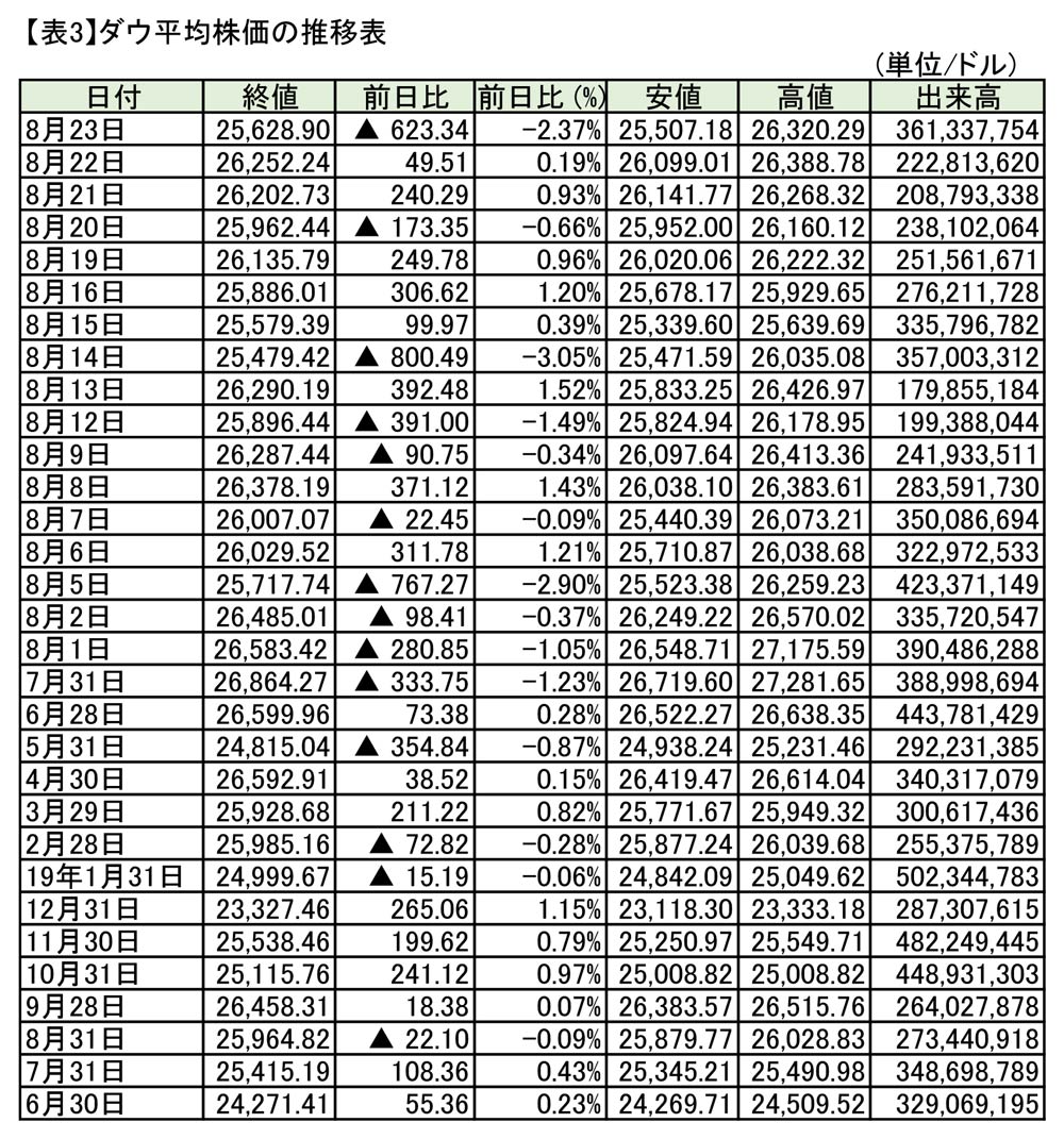 東京株式市場における26日の日経平均株価は、8月23日(金)のNYダウ平均が前日比▲623.34ドル(▲2.37%)と大幅な下げとなったことを受けて、一時500円を超えるマイナスとなったものの、終値は前日比▲449円87銭の2万261円04銭で取引を終えた。