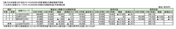 【表1】は九州地銀18行(含むFG・FH)の20年3月期(通期)の経営成績推移表である。
