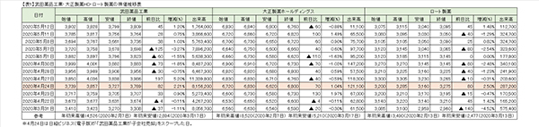 【表1】を見ていただきたい。武田薬品工業、大正製薬HD、ロート製薬の株価推移表である。