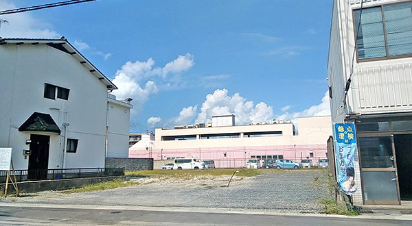 福岡市西区周船寺2丁目。JR「周船寺駅」から徒歩5分圏内で、スーパー「にしてつストア周船寺店」の裏手にマンションが建設予定となっている。