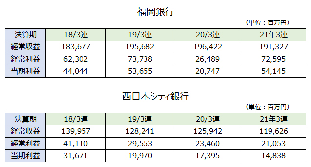 福岡銀行の従業員が3,600人台、西日本シティ銀行3,400人台。規模の割にあまりにも従業員数が多いですね。だから企業収益に大幅な差がつくのです。要するに経営していないということですね。