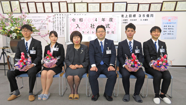 創水プラントメーカーのゼオライト(株)(福岡市博多区)は1日、福岡本社で「令和4年度入社式」を執り行った。式には新入社員4人と同社の役員、幹部社員が出席した。
