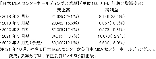 日本M&Aセンターの売上高は、2010年3月期は36億円にすぎなかったが、22年同期は390億円の見込みと11倍弱に急拡大。M&A成約件数も17年3月期に年間524件だったのが21年3月期には914件、22年3月期は1,000件に迫る勢いだ。成約件数最多でギネス世界記録の認定を受けている。