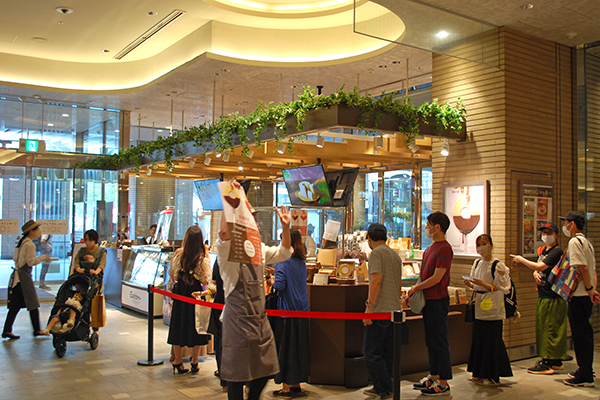 明徳庵は「博多の森結婚式場」の運営で知られるアイ・ケイ・ケイホールディングス(株)の子会社。結婚式場での引き菓子などを提供してきたが、顧客から高評価を受け20年に分社化。自社ECサイトなどの通信販売で一般消費者への提供を行ってきた。こうしたなかで今年9月14日から福岡市博多区の博多マルイでポップアップ(期間限定)ショップ「morinoiro(モリノイロ)」を出店。「博多の森Premium生バーム」のほか、ガトーショコラ、チーズケーキなどの焼き菓子を販売した。出店中は毎正時ごとにパティシエが1つずつつくりあげる30個限定の「Premium生ディップ」のタイムイベントを実施。平日も40~50名の行列をなした。