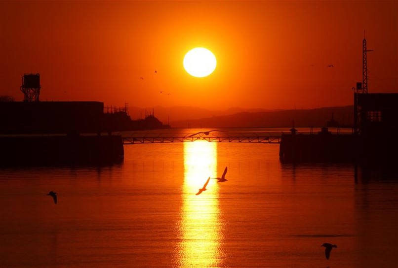 そんな三池港を一望できる三池港展望所からは、美しい夕日を眺めることができる。とくに、日没の方位が247度前後となる11月と1月の約10日間は、三池港の航路先端から閘門(こうもん:水量を調節して水面を一定にするためのせき)を抜けて三池港展望所まで、ほぼ一直線となる「光の航路」を見ることができる。