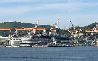 2隻の受注額は1,000億円とされているが、9月完工を目指して赤字覚悟のラッシュワークが続けられている。同時に建造されている2番艦は来年3月の完工予定。同社の客船事業の将来をかけた戦いはまさに正念場だ。