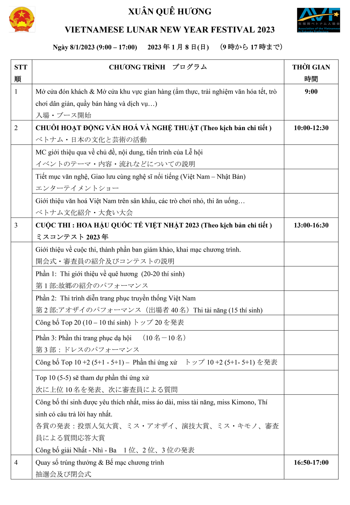 4回目の開催となる今回は、ベトナム料理・物販のブースなどが出展されるほか、ステージではエンターテインメントショーやベトナムの民族衣装「アオザイ」パフォーマンスショーなどが行われる。さらにベトナムから有名歌手、俳優ら20名を招待し、パフォーマンスが披露される予定だ。