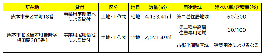 九州財務局は、熊本市東区栄町と北区植木町の以下の物件について、二段階一般競争入札(定期借地)を実施する。二段階一般競争入札は、貸付対象財産に対して開発条件などをあらかじめ設定したうえで、入札参加者の土地利用に関する企画提案書を審査委員会で審査し、審査通過者による価格競争を経て落札者を決定するもの。