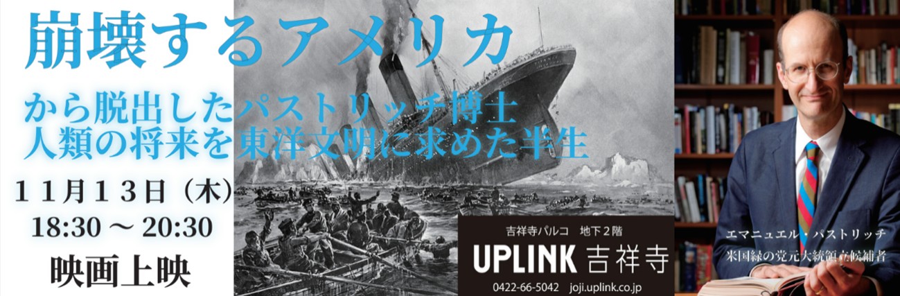 『崩壊するアメリカから脱出したパストリッチ博士:人類の将来を東洋文明に求めた半生』(田窪優司監督)は、アメリカで歴史上初めて日本専門家として主要政党、緑の党から大統領候補者として立候補したエマニュエル・パストリッチ博士の活動を紹介するドキュメンタリー映画だ。