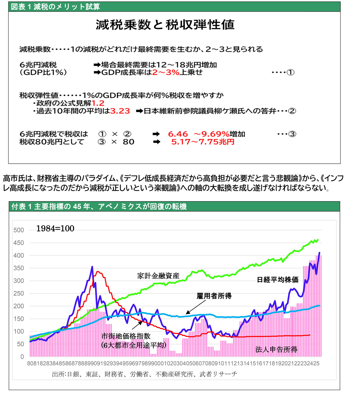 隠されてきた減税メリット、減税乗数と税収弾性値