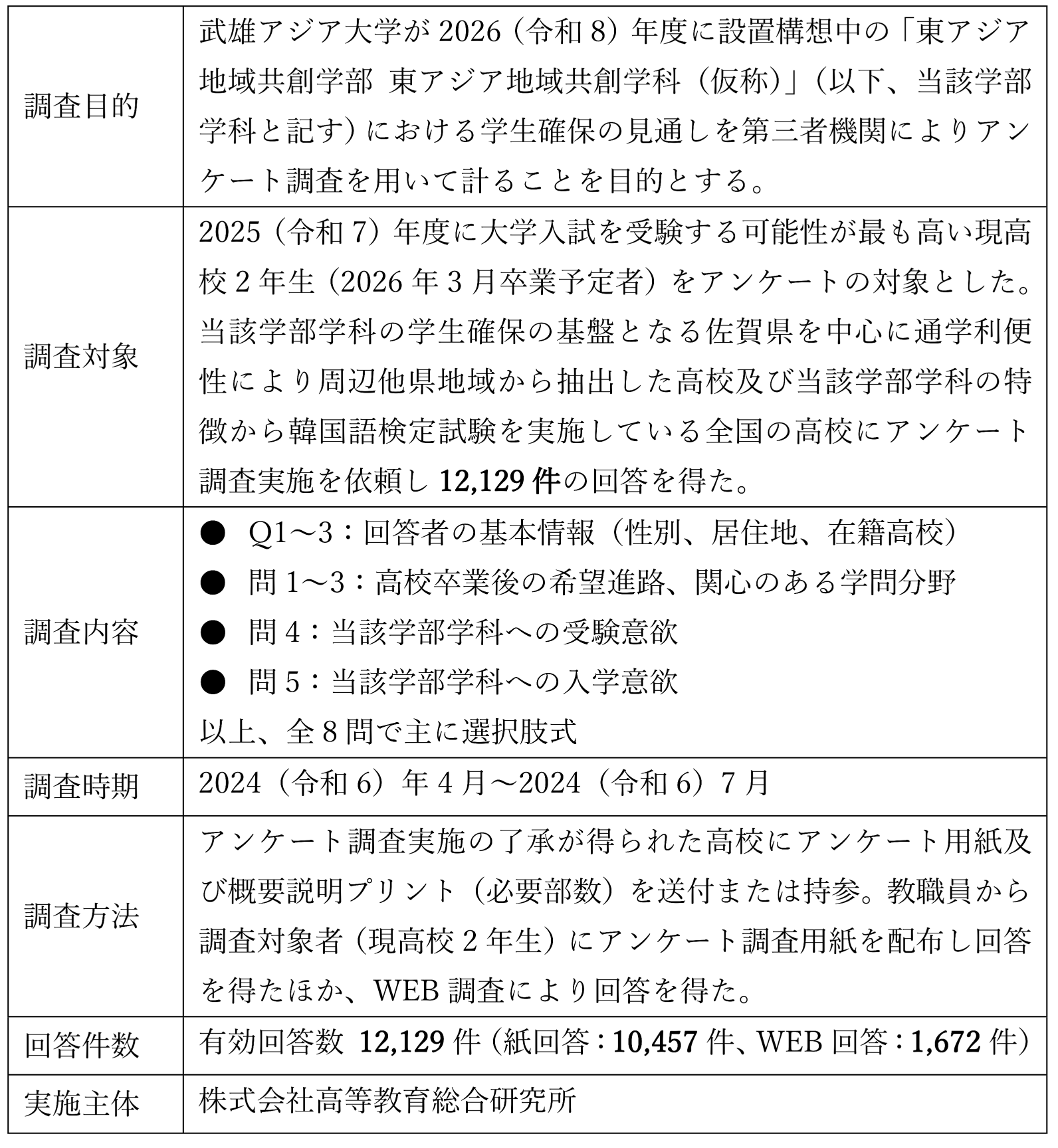 以上の結果から武雄アジア大学は学生確保の見込みを次のように結論付ける。