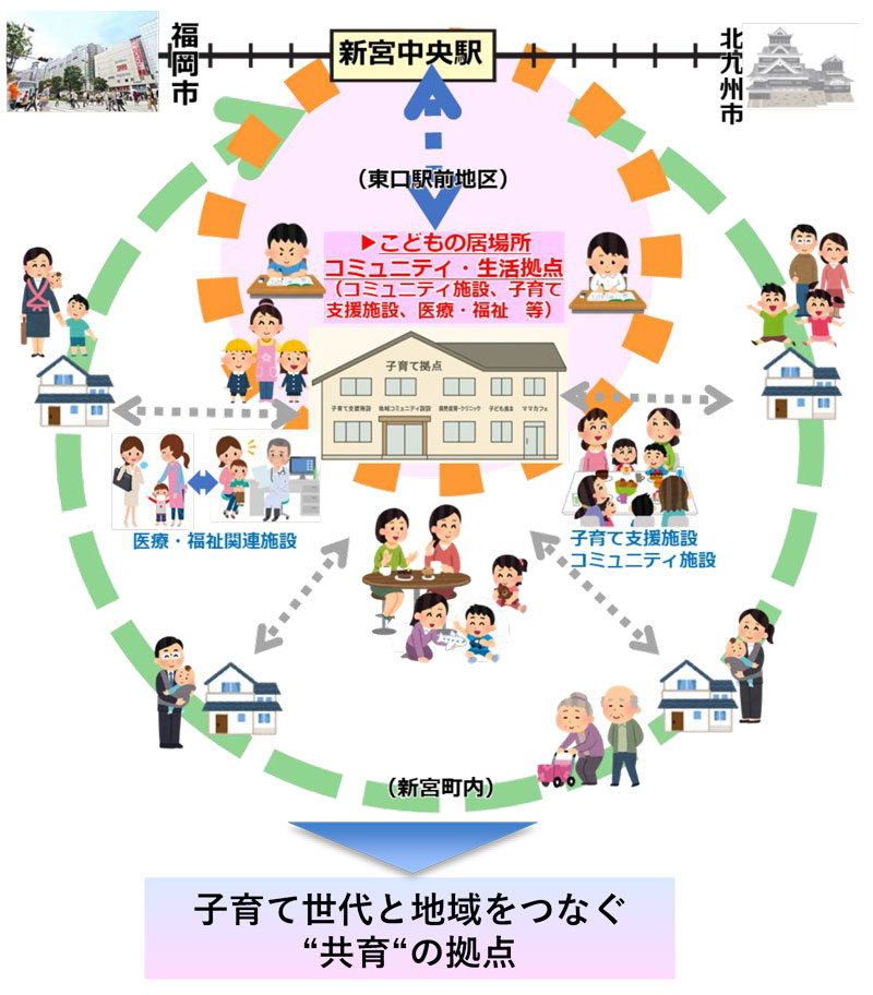 同基本構想では、同跡地活用事業のコンセプトとして「子育て世代と地域をつなぐ“共育”の拠点形成」が掲げられている。単なる建物の再利用ではなく、子ども・保護者・地域住民がつながる複合拠点として整備する考え方が示されている。
