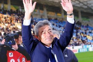 「バモー!」試合後、ゴール裏のサポーターの前でのマイクパフォーマンス。魂の叫びが響いた。